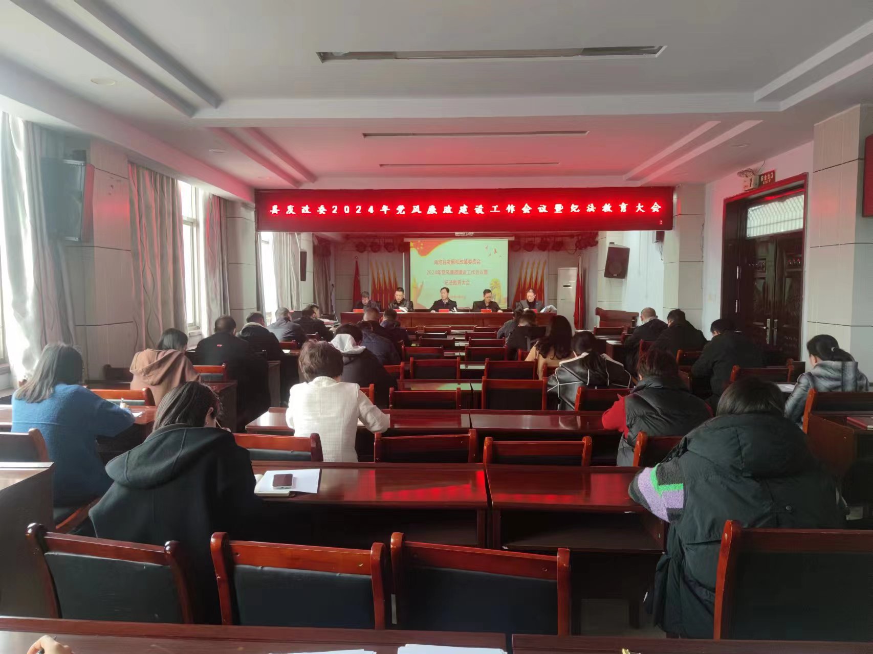 3月15日,縣發改委召開2024年度黨風廉政建設工作會議暨紀法教育大會,認真貫徹落實二十屆中央紀委三次全會、十一屆省紀委四次全會、八屆市紀委四次全會和十三屆縣紀委四次全會精神,全面總結2023年黨風廉政建設和反腐敗工作,安排部署2024年黨風廉政建設工作。縣政府副縣長、縣發改委黨組書記、主任張爭先出席會議并講話,縣發改委全體干部職工參加會議。