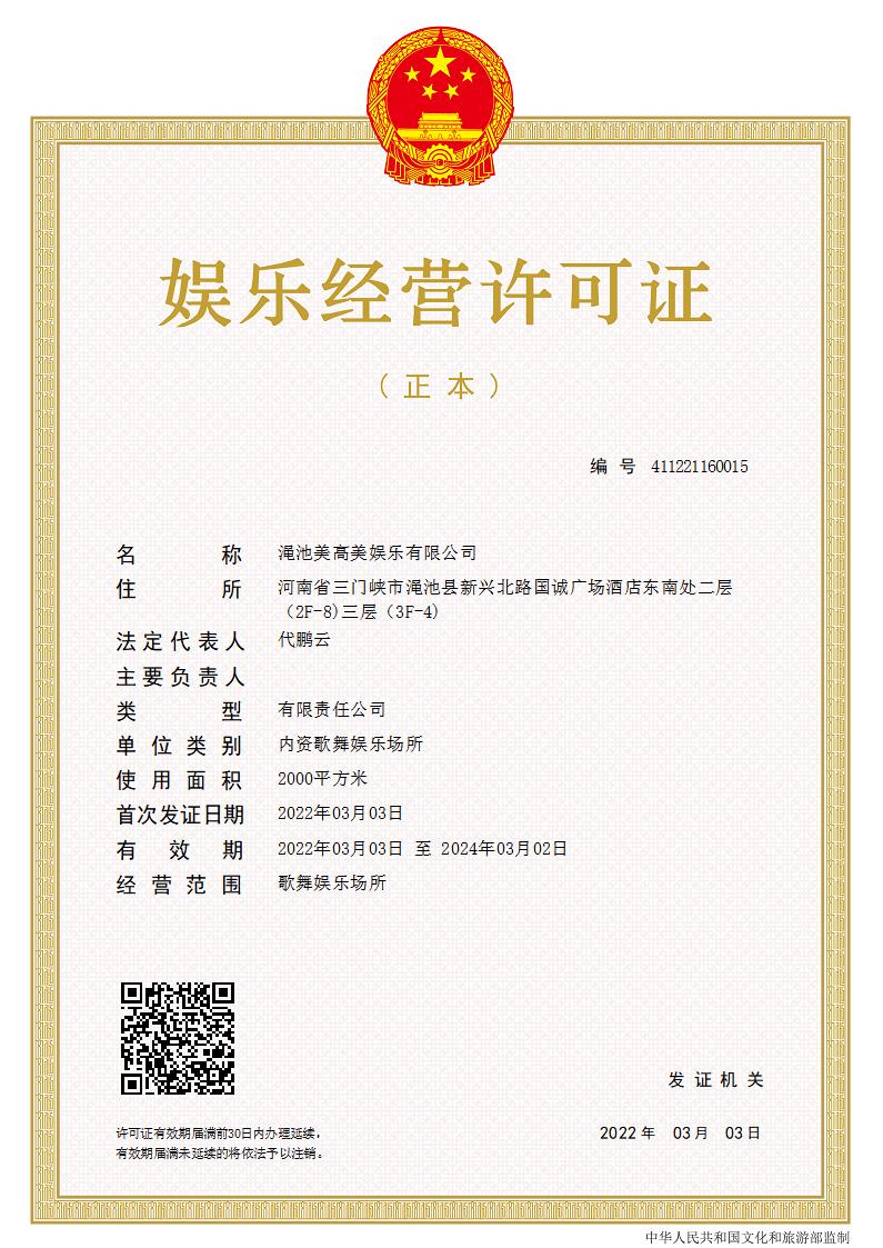 澠池美高美娛樂有限公司行政許可公示