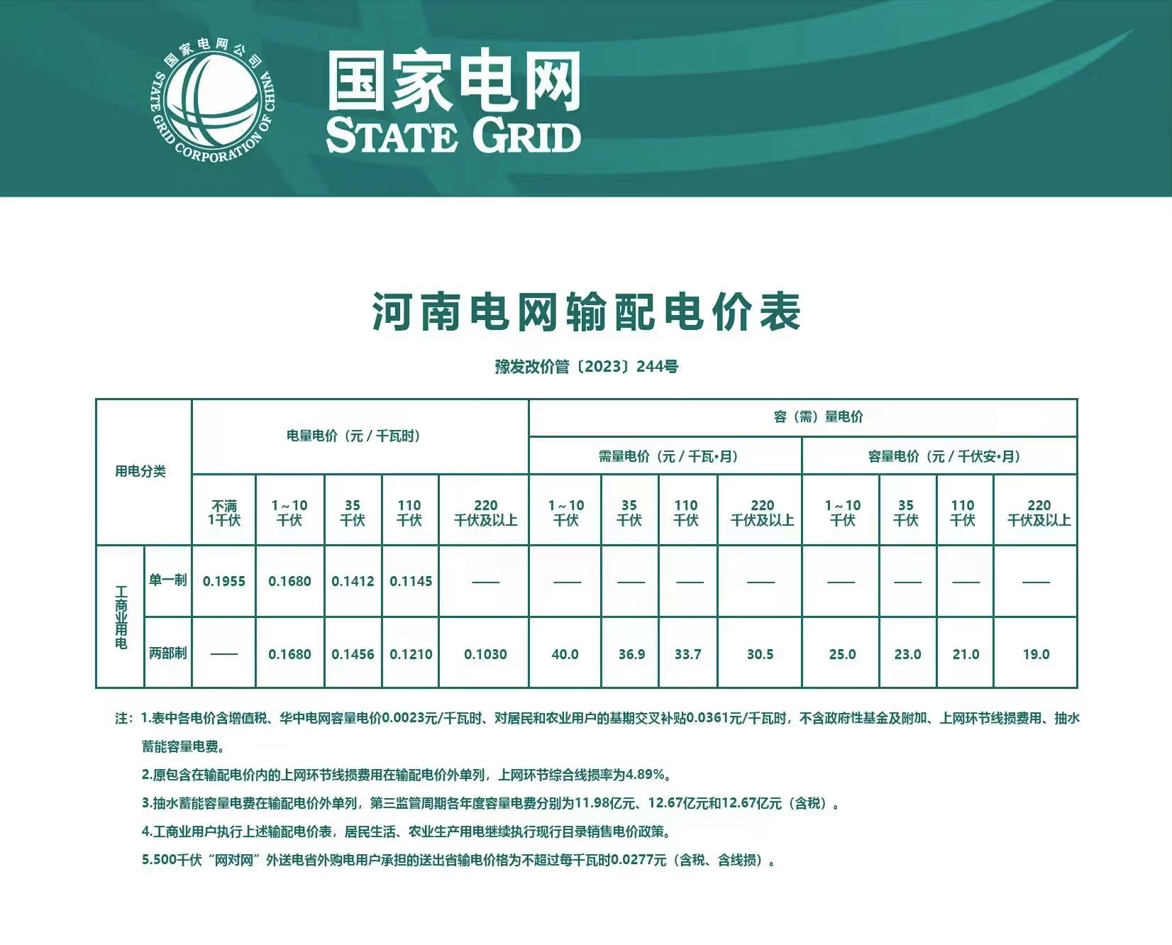 供電領域信息公開相關目錄: 1.河南電網輸配電價