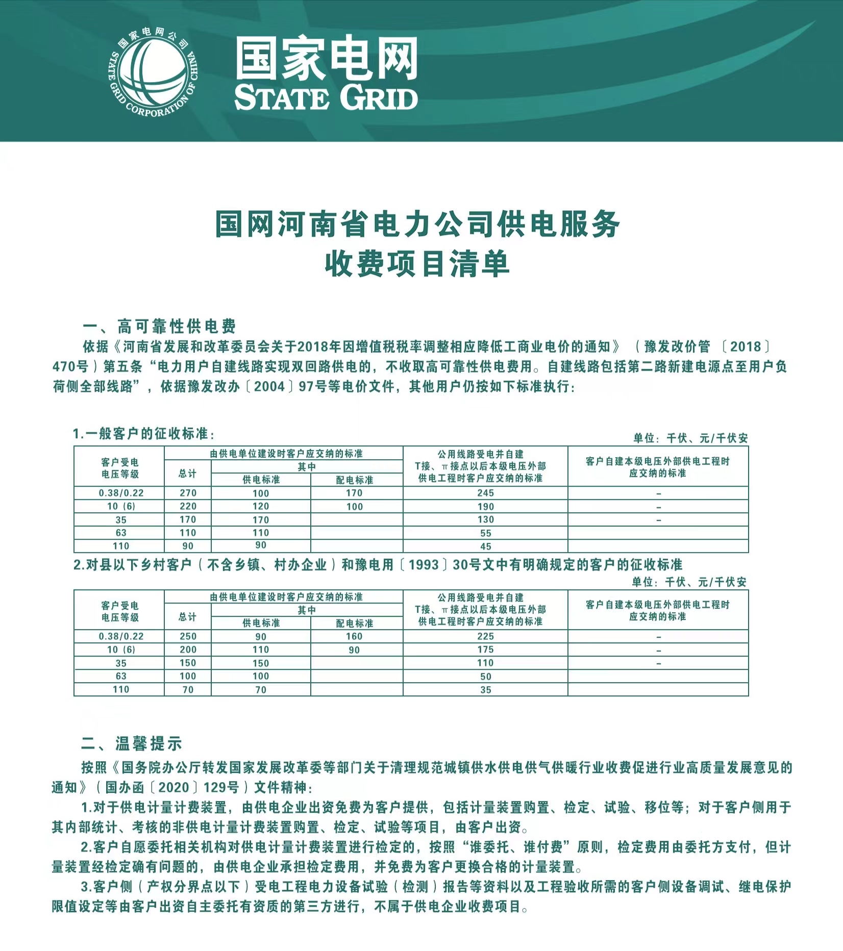 3.國網河南省電力公司供電服務收費項目清單